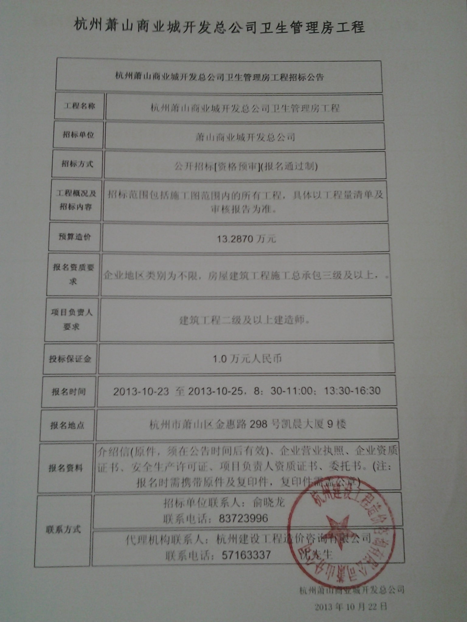 衛(wèi)生管理房工程招標(biāo)公告