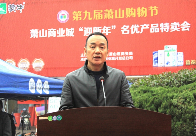 蕭山商業(yè)城黨總支書記、管委會主任、開發(fā)總公司總經(jīng)理裘海洪致辭,他說,今年是商業(yè)城建城開業(yè)二十五周年。二十五年來,商業(yè)城從無到有、從小到大,從品牌立市到品牌強市,始終著力打造著“商品品牌、誠信經(jīng)營品牌、服務(wù)管理品牌、大商城品牌”四大品牌建設(shè)。二十五年用心經(jīng)營,二十五年以誠筑城,讓這座“聚天下之貨,致天下之民”的商賈云集之城在新時代煥發(fā)出了新活力、新魅力。