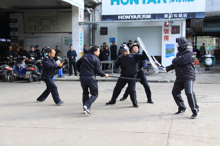 本次演練采取“模擬場景,實(shí)戰(zhàn)演練”的方式,共設(shè)有防爆炸、防刀斧砍殺演練和民兵應(yīng)急拉練三大項目。防爆炸模擬演練地點(diǎn)設(shè)在倉儲市場,巡防隊員發(fā)現(xiàn)可疑爆炸物后,立即向指揮長匯報,并及時啟動反恐防暴應(yīng)急預(yù)案開展處置工作。防刀斧砍殺模擬演練地點(diǎn)設(shè)在建材市場消防池附近,商業(yè)城反恐隊員現(xiàn)場模擬對抗持刀歹徒,結(jié)合當(dāng)前反恐工作實(shí)際,對劫持人質(zhì)、刀斧砍殺、駕車沖撞等恐怖襲擊事件進(jìn)行處置演練,最大限度的確保群眾生命財產(chǎn)安全。民兵應(yīng)急拉練地點(diǎn)設(shè)在商業(yè)城生態(tài)停車場籃球場,應(yīng)急分隊現(xiàn)場演示擒敵術(shù)、格斗術(shù)、臂盾運(yùn)用等基礎(chǔ)警務(wù)技能,受到現(xiàn)場觀摩者的贊嘆。