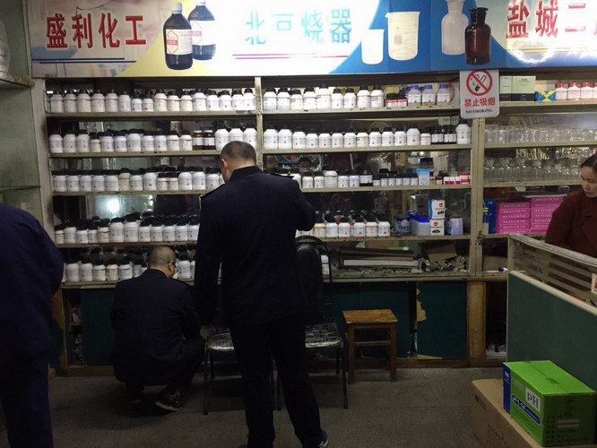 為切實加強?;繁O管,嚴防類似江蘇鹽城化工廠爆炸事故發生,近期,蕭山商業城五金百貨市場組成檢查組,集中檢查?;方洜I戶以及倉庫。