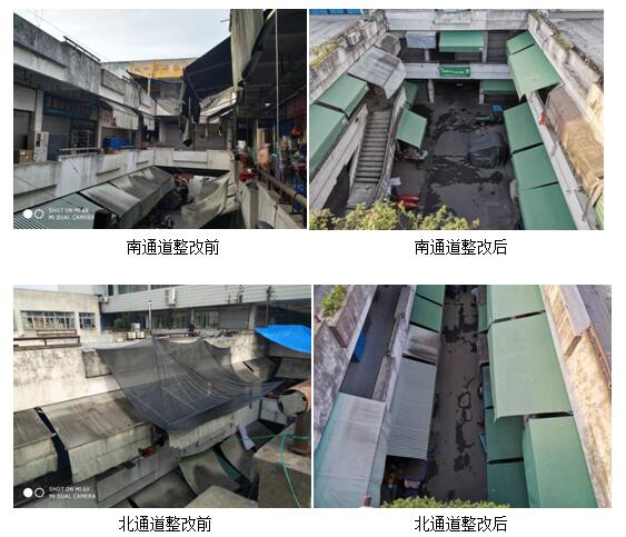 特別是在雨棚隱患消除中,因市場雨棚已使用10余年,年久失修、破舊不堪,不少雨棚僅依靠幾根繩子綁在護欄上維持使用,隨風(fēng)擺動、搖搖欲墜。這不僅影響市場的環(huán)境面貌,更是存在著嚴(yán)重的安全隱患。為此,市場管理員積極與經(jīng)營戶協(xié)商溝通,要求經(jīng)營戶更換破舊雨棚,由市場管理辦公室聯(lián)系施工人員,更換同一顏色、同一規(guī)格的雨棚。在市場的努力下,該工作得到了眾多經(jīng)營戶的大力配合,目前已更換一至三樓南北通道破損、存在隱患的雨棚共計25個,市場環(huán)境面貌得到了很大改善。