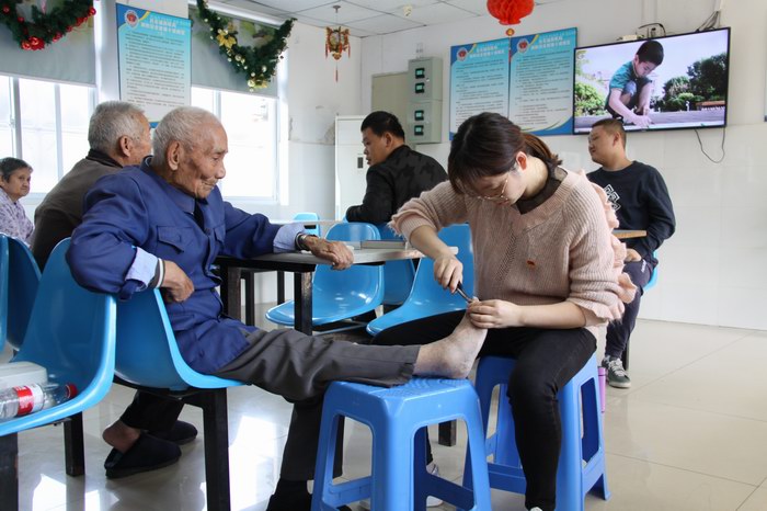 接下來,志愿者們給老人量血壓、剪指甲、拔火罐,陪老人聊聊近況、嘮嘮家常,并叮囑他們在日常生活中一定要注意身體健康。有的志愿者們為老人打掃房間、擦擦窗戶,讓他們的生活環境更好干凈舒適。