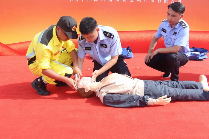 區城投集團黨委副書記、總經理許廣文宣布集團安全知識培訓暨商業城消防技能比武正式開始,首先進行安全知識培訓,由商業城專職消防隊隊長俞劉平講解并演示滅火器、消防水槍水帶的操作使用方法;邀請社會應急救援單位進行緊急情況下心肺復蘇的演示和講解;集團各部司派員進行了操作練習。