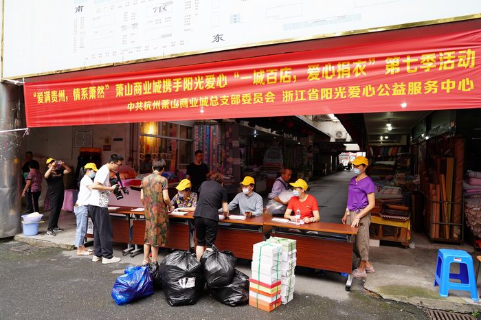 6月29日上午,在服裝市場圓盤,蕭山商業(yè)城黨總支攜手省陽光愛心公益服務中心開展了第七季以“一城百店,愛心捐衣”為主題的公益捐贈活動。活動旨在呼吁城內(nèi)全體經(jīng)營商戶和社會人士,把自己的愛心匯集,輸送給貴州貧困山區(qū)的孩子們,希望給那里的孩子送去一份溫暖。