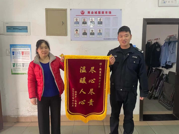 在征求了經營戶自己的意愿后,許佳駿通過手機軟件叫了輛車,一起陪同的還有旁邊一家店的經營戶,在等車來的同時,許佳駿還主動將經營戶擺在外面的衣服架子收進營業房內,關上了門。