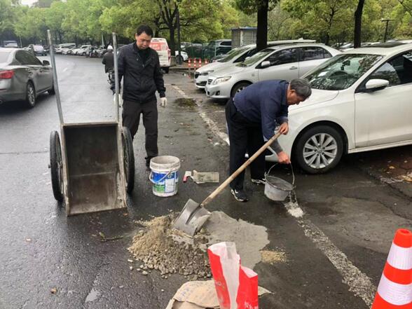 維修人員積極做好基礎設施維修維護工作,近日對下水窨井蓋、破損路面進行維修。