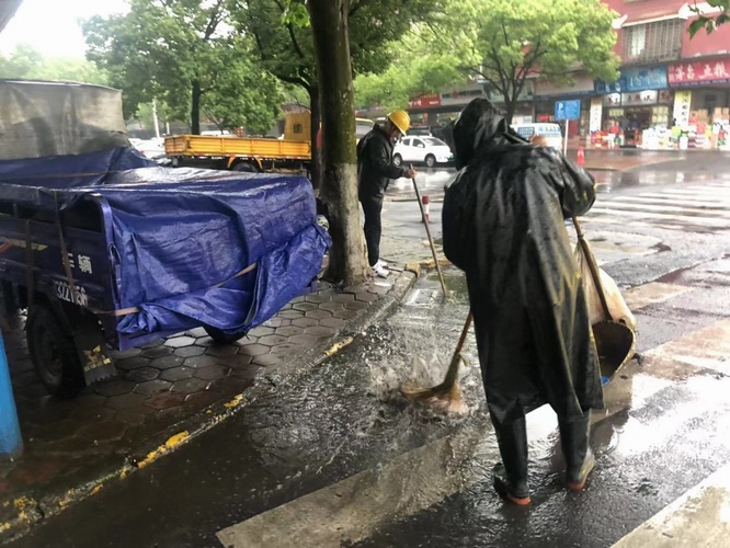 一是及時轉發通知,安排部署防御強降雨工作。二是儲備防御物資,雨衣26套,雨鞋18雙,安全帽44頂,鐵鍬39把,強光電筒24只,掃帚10把,草包300只,發電機1臺,抽水機1臺。三是加大巡查力度,及時清理屋面雜物,疏通下水道,清掃路面積水洼地。