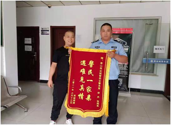 6月16日,商城煙酒店老板送來了“遇難見真情 警民一家親”的錦旗,肯定商業城的警務工作做得好。