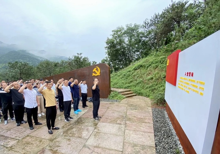 重溫入黨誓詞。在陳望道故居的《共產黨宣誓》面前,黨總支書記陳聰帶領大家一起重溫入黨誓詞,莊重嚴肅、鏗鏘有力地進行宣誓,回溯初心,銘記使命。