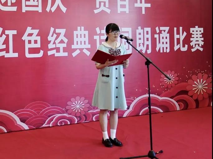此次比賽圍繞“迎國慶?賀百年”主題,采用誦讀紅色詩歌的方式,緬懷革命先烈,抒發愛國情懷,感悟初心使命。選手們用《黨旗頌》致敬英雄,用《憶百年輝煌》追憶初心,用《七月的天空》《我和我的祖國》《祖國 你就是我要唱的那首歌》歌頌黨歌頌祖國,用《百年答卷》《可愛的中國》《那是我的祖國》《祖國頌歌》《中華頌》回顧百年來的春華秋實與日新月異。滄海桑田,百年芳華,中華民族正行走在偉大復興之路上。選手們配以視頻、伴舞、情景劇等藝術表現手法,極大地增強朗誦作品的藝術感染力和舞臺表現力,將比賽一次又一次推向高潮,贏得滿堂喝彩。