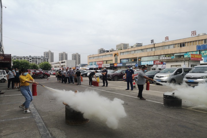 6月28日上午,蕭山商業城公司安全保衛部受服裝市場翔隆餐飲酒店用品有限公司邀請,前往服裝市場西大門停車場為該公司所有工作人員進行消防安全的技能培訓及實操演練。
