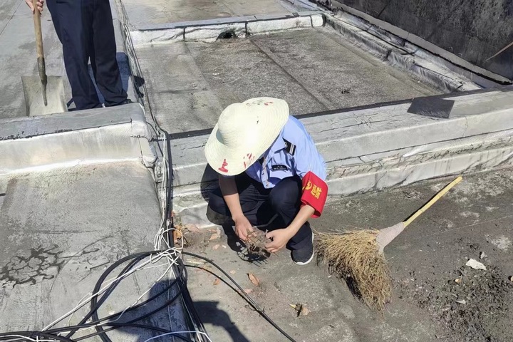 排險在前,織密群眾“安全網”。安排全體市場管理員對該市場樓頂共計50個左右下水口四周進行垃圾淤泥清理并更換新的防堵網罩地漏,清理出來的垃圾淤泥裝進編織袋及時清運掉(總計5大袋),確保雨季到來時屋頂排水通暢。同時,對區塊內易積水或排水不暢區域進行排查,發現4處疑似點,已分別采取加強巡查、疏通污水井等措施消除隱患。巡查市場各區塊排查出3處雨水管破損漏水隱患分別采取加固、拆除、鋪設雨水管道等措施進行整改,平時加強巡邏排查、確保早發現、早預防、早整改。