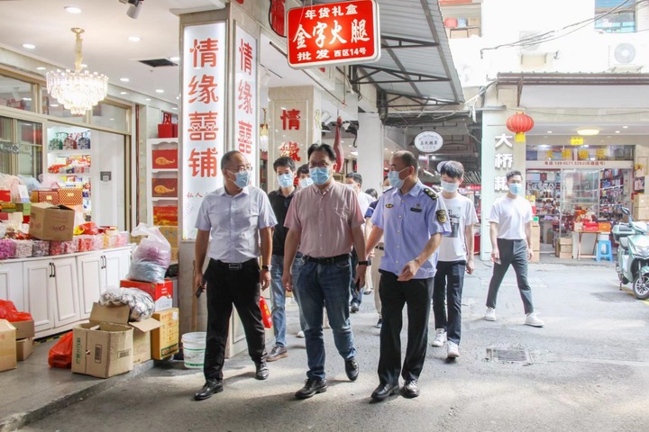 為確保國慶期間各項疫情防控工作落實到位,9月30日,杭州市市場監管局黨委委員、市市場監管綜合行政執法隊隊長汪曉敏一行赴蕭山商業城華東副食品市場開展“無疫單元”建設驗收工作,區市場監管局黨委副書記王莉敏、南站所所長王志敏,商業城公司黨總支書記、總經理陳聰等陪同。