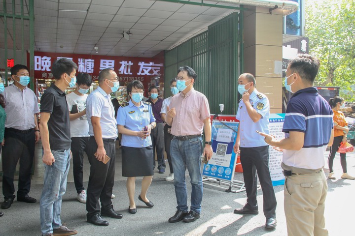 杭州市市場監管局黨委委員、市市場監管綜合行政執法隊隊長汪曉敏一行赴商業城華東副食品市場開展“無疫單元”建設驗收工作