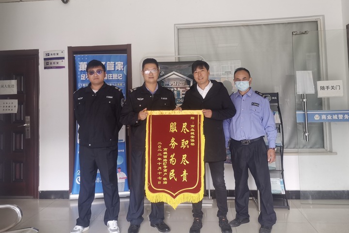 事后,建材市場商城西路67號店主對安保部工作人員盡職盡責、為民解憂的工作態度表示贊賞,于是有了送錦旗致謝的一幕。
