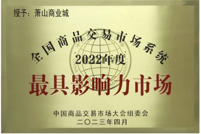 喜報 蕭山商業城被授予“全國商品交易市場最具影響力市場”榮譽稱號