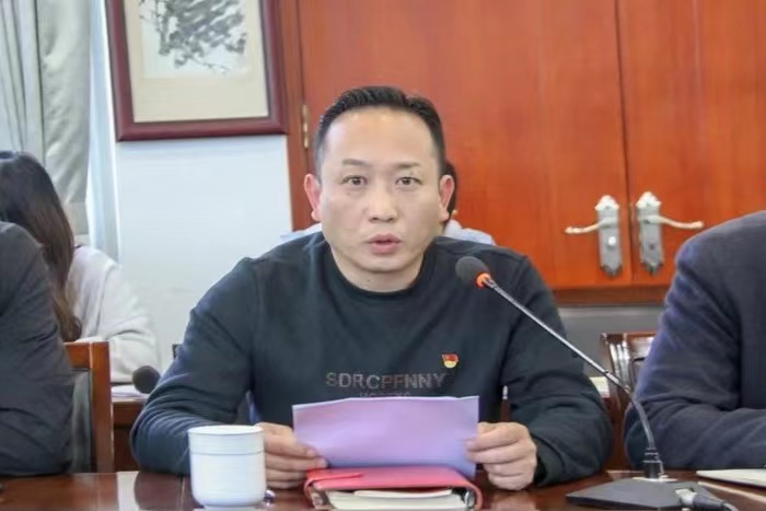 活動第一環(huán)節(jié),公司黨總支書記、總經理陳聰講話。陳聰首先與全體黨員一起學習了全國“兩會”精神和學習貫徹習近平新時代中國特色社會主義思想主題教育工作會議精神,隨后,結合商業(yè)城近期工作,提出三點要求。