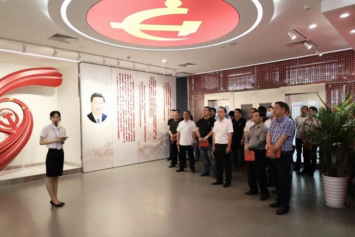 公司黨員在黨群服務(wù)中心講解員的帶領(lǐng)下參觀了黨建宣傳展廳。展廳以“奔競不息、勇立潮頭”為主題,通過時(shí)代回想、黨建繪卷、先鋒模范、使命征程四個(gè)篇章,用大量的文字、圖片結(jié)合多媒體影像,展示了一代代人共建蕭山的美好點(diǎn)滴。