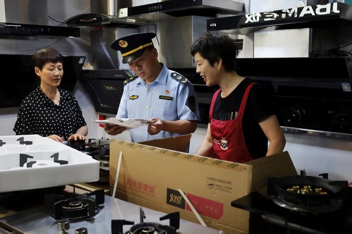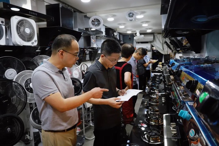 杭州市市場監管局產品質量安全監管處處長徐玉祥一行赴蕭山商業城開展燃氣灶具產品質量安全檢查