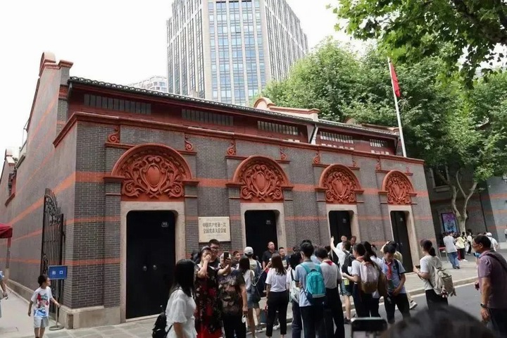 國旗飄揚,梧桐掩映。上海市黃浦區興業路76號,石庫門建筑靜靜坐落,外墻青紅磚交錯,礬紅色雕花門楣,黑漆大門,莊嚴肅穆。1921年7月23日晚,中國共產黨第一次全國代表大會在這里拉開帷幕。