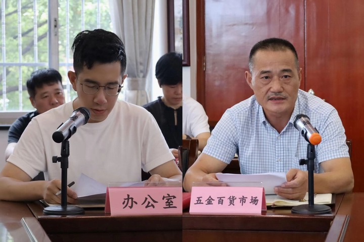 會上,公司辦公室、五金市場作半年度工作匯報交流。