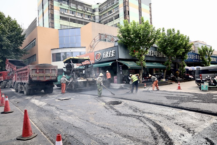 7月起,公司積極配合相關部門,對商城中路及兩側非機動車道重新鋪設瀝青,對人行道鋪設花崗巖。期間,公司工作人員高效做好了現場監管維護工作,保障了改造工程的有序推進和市場的正常運行。