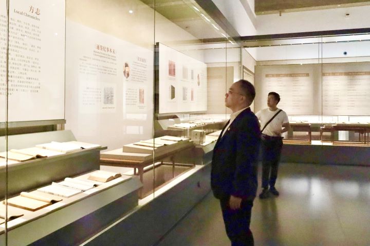 館內(nèi)設(shè)有“潮起之江——‘重要窗口’主題版本展”、“文獻(xiàn)之邦——江南版本文化概覽展”、“盛世浙學(xué)——浙江文化研究工程成果展”、“千古風(fēng)流——浙江歷史文化名人展”四個展覽主題,共展出珍貴古籍、文物、手稿等5000多件。黨員們被現(xiàn)場栩栩如生的場景所沉醉,仿佛身臨其境,深刻體會到了中國建造師的匠心獨(dú)運(yùn)和對“中華文脈”的敬意與守望,在駐足、靜觀、深思中,開闊了視野、陶冶了情操、增進(jìn)了友情。