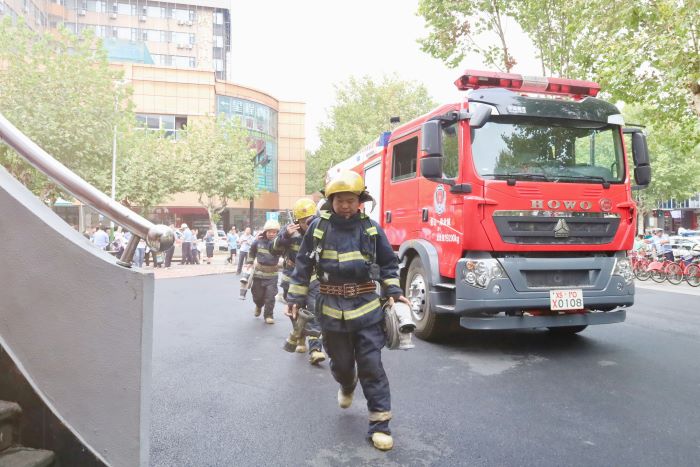 市場外圍,交通管理部迅速做好現(xiàn)場警戒工作。在指定管理員的正確引導下,商業(yè)城專職消防隊以最快時間到達現(xiàn)場撲滅明火,營救被困人員,并由110警車送往醫(yī)院。本次演練緊張嚴密,秩序井然,有效檢驗了公司應急預案實效水平,達到了預期效果。