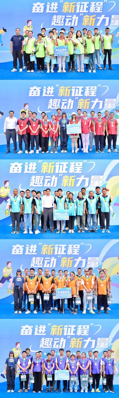 經過緊張刺激的比拼,根據各隊最終積分情況,決出了趣味運動會的全部獎項。頒獎儀式上,各隊紛紛與頒獎領導合影留念。