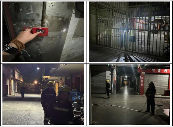 本次拉練采用“雙盲”模式(不預告時間、不設定腳本),通過模擬真實火情全面檢驗市場夜間應急響應能力,夜間值班人員在接到警報后立即攜帶滅火器、對講機以及大門鑰匙前往報警地點,到達現場后立即通過對講機上報真實火警,消防人員在收到出動指令后,迅速出動,前往警報地點,整個過程緊張有序。在到達地點后,根據統(tǒng)一指示,進行應急救援出水測試。隨后,相關部室負責人清點了人員到位情況,對出動人員的著裝、個人防護裝備、消防車等進行了詳細查看。