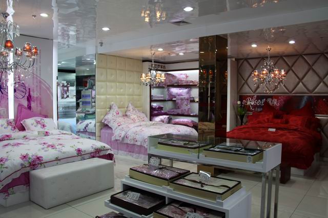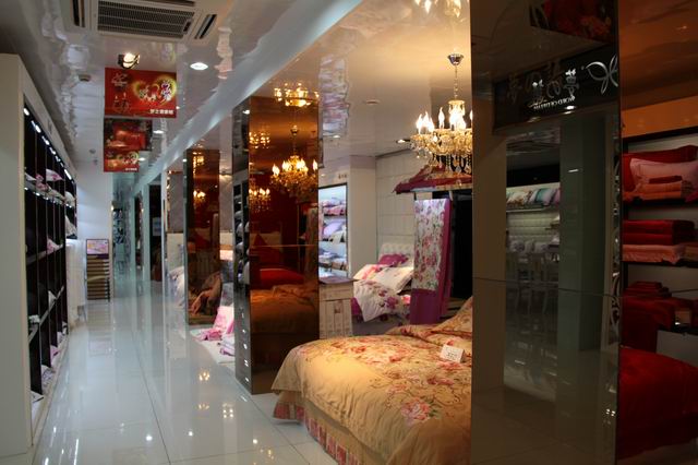 進入百家匯家紡廣場,只見地上鋪著多彩地毯,在各色燈光的輝映下,溫馨浪漫,各類床品布藝色彩華麗,流光溢彩,其理想的購物環(huán)境可謂富麗堂皇、美侖美奐。這里有各類高檔家用的床品(套件、枕芯、被子、藤席、蚊帳、高檔床墊),床品四件套、兒童床品三件套、珊瑚絨毯、蠶絲被、保健枕、枕芯等等,更有紫羅蘭、嘉加夢、夢天姿、翔宇家紡、夢之語等品牌精品床品,千姿百態(tài),讓人流連忘返。